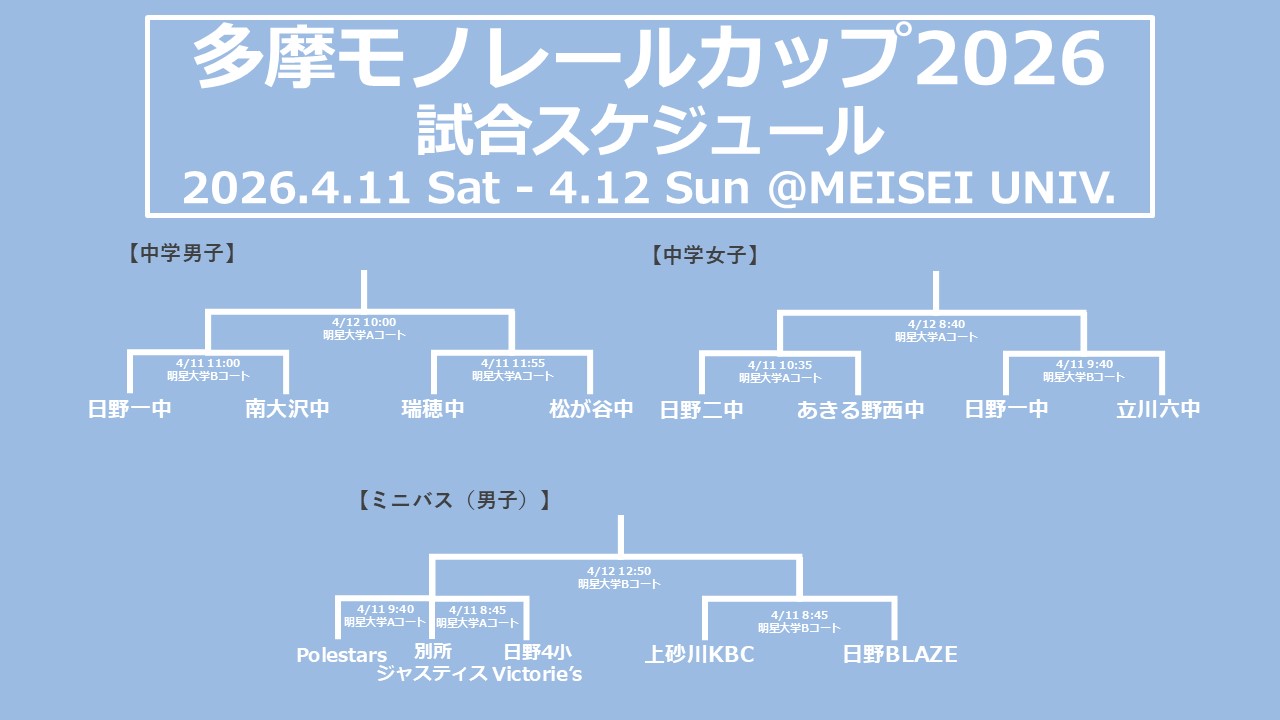 多摩モノレールカップ2026の組み合わせが決定しました!!